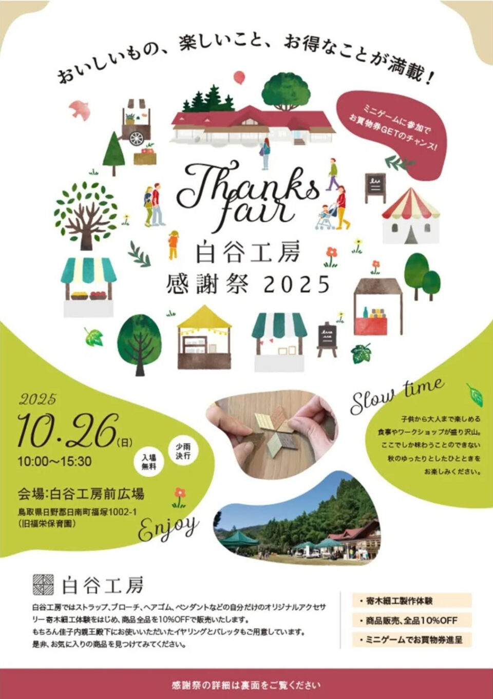 2025年10月26日(日)、日南町の白谷工房さんで行われる「白谷工房感謝祭」に出店いたします。